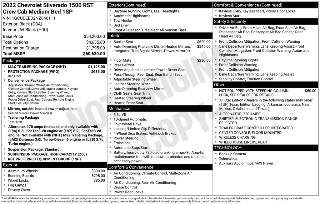Gregg Young CDJR is very proud to offer this terrific 2022 Chevrolet Silverado 1500 RST in Black, TONNEAU COVER, 10-Way Power Driver Seat w/Lumbar, 12.3" Multicolor Reconfigurable Digital Display, 120-Volt Instrument Panel Power Outlet, 6-Speaker Audio System, All-Star Edition, Auto-Locking Rear Differential, Bluetooth® For Phone, Chevytec Spray-On Black Bedliner, Color-Keyed Carpeting Floor Covering, Compass, Convenience Package, Deep-Tinted Glass, Dual Rear USB Ports (Charge Only), Dual-Zone Automatic Climate Control, Electric Rear-Window Defogger, Electrical Steering Column Lock, Electronic Cruise Control, Enhanced Cooling Radiator, EZ Lift Power Lock & Release Tailgate, Front Frame-Mounted Black Recovery Hooks, Front LED Fog Lamps, Front Rubberized Vinyl Floor Mats, HD Rear Vision Camera, Heated Driver & Front Outboard Passenger Seats, Heated Power-Adjustable Outside Mirrors, Heated Steering Wheel, Heavier Duty Rear Springs, High Gloss Black Mirror Caps, Illuminated entry, Increased RGAWR, Inside Rear-View Mirror w/Tilt, Integrated Trailer Brake Controller, Keyless Open & Start, Leather Wrapped Steering Wheel, LED Cargo Area Lighting, Manual Tilt/Telescoping Steering Column, Max Trailering Package, OnStar & Chevrolet Connected Services Capable, Power Front Windows w/Driver Express Up/Down, Power Front Windows w/Passenger Express Down, Power Rear Windows w/Express Down, Preferred Equipment Group 1SP, Protection Package, Rear 60/40 Folding Bench Seat (Folds Up), Rear Rubberized-Vinyl Floor Mats, Rear Wheelhouse Liners, Remote Vehicle Starter System, SiriusXM w/360L, Standard Suspension Package, Standard Tailgate, Steering Wheel Audio Controls, Theft Deterrent System (Unauthorized Entry), Trailering Package, Wireless Phone Projection. EcoTec3 5.3L V8