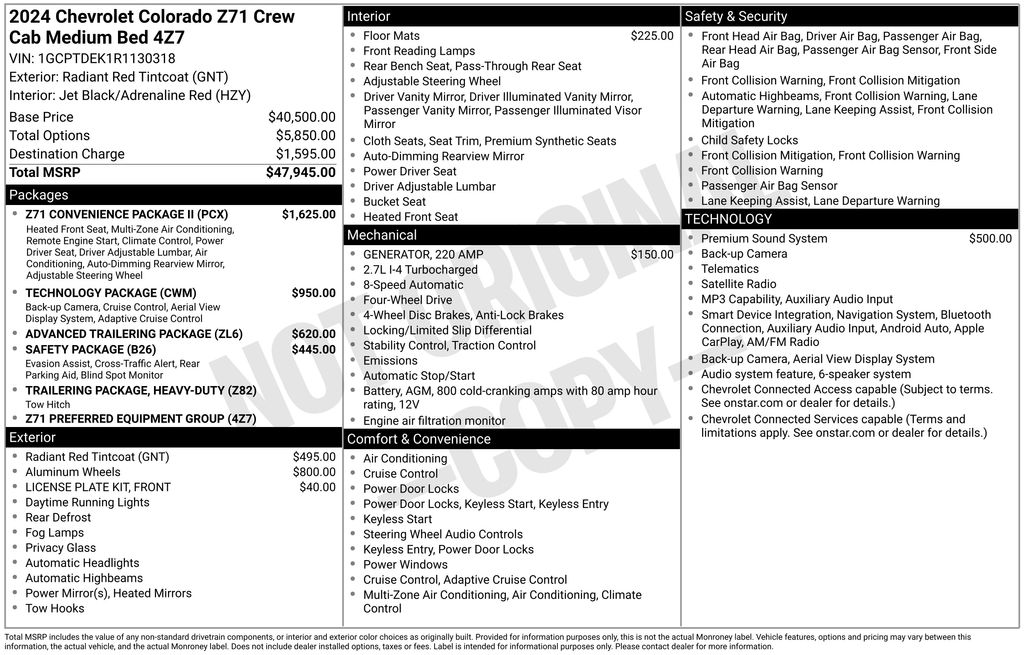 Gregg Young CDJR is delighted to offer this good-looking 2024 Chevrolet Colorado Z71 in Radiant Red Tintcoat, Recent Arrival! 2.7L I4 Turbocharged DOHC 16V LEV3-ULEV50 310hp