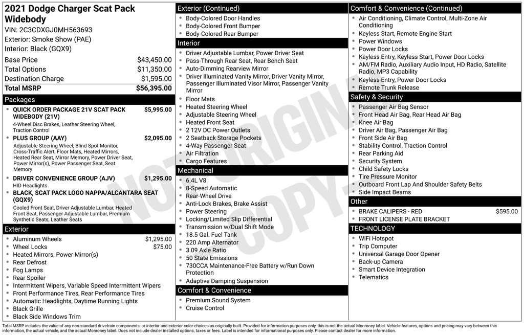 Gregg Young CDJR is delighted to offer this handsome 2021 Dodge Charger R/T Scat Pack Widebody in Smoke Show, Recent Arrival! SRT HEMI 6.4L V8 MDS
