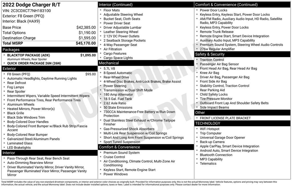 Gregg Young CDJR is pumped up to offer this superb-looking 2022 Dodge Charger R/T in F8 Green, Apple CarPlay/Android Auto, Black 1-Piece Performance Spoiler, Black Dodge Grille Badge, Blacktop Package, Blacktop R/T Badge, Gloss Black I/P Cluster Trim Rings, HEMI Blacktop Fender Badge, Illuminated entry, ParkView Rear Back-Up Camera, Power driver seat, Power windows, Quick Order Package 26N, Radio: Uconnect 4C w/8.4" Display, Remote keyless entry, Satin Black Charger Decklid Badge, Satin Black Dodge Tail Lamp Badge, Tilt steering wheel. HEMI 5.7L V8 Multi Displacement VVT