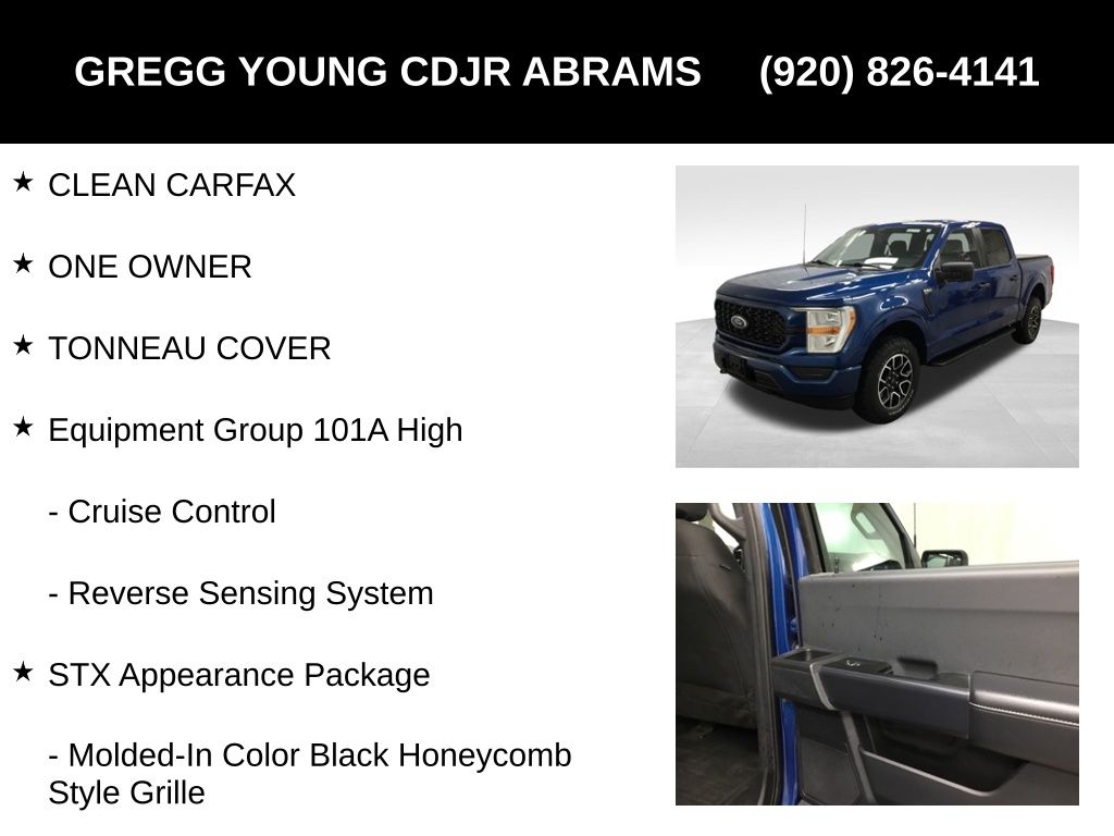 Gregg Young CDJR is excited to offer this fantastic-looking 2022 Ford F-150 XL in Blue Metallic, CLEAN CARFAX, ONE OWNER, TONNEAU COVER, Body-Color Front & Rear Bumpers, Box Side Decals, Cruise Control, Equipment Group 101A High, Exterior Parking Camera Rear, GVWR: 6,470 lbs Payload Package, Illuminated entry, Molded-In Color Black Honeycomb Style Grille, Rear Window Defroster, Rear Window Fixed Privacy Glass, Remote keyless entry, Reverse Sensing System, STX Appearance Package, SYNC 4 w/Enhanced Voice Recognition, Unique Sport Cloth 40/20/40 Front-Seats. 2.7L V6 EcoBoost