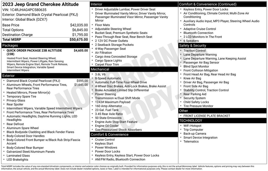 Gregg Young CDJR is delighted to offer this stunning 2023 Jeep Grand Cherokee Altitude X in Diamond Black Crystal Pearlcoat, 115V Auxiliary Power Outlet, Altitude Appearance Package, Black Headliner, Capri Leatherette/Suede Seats, Delete Laredo Badge, Gloss Black Exterior Accents, Heated Front Seats, Heated Steering Wheel, Illuminated entry, Molded In Color Black/Gloss Black Roof Rails, ParkView Rear Back-Up Camera, Power driver seat, Power Liftgate, Quick Order Package 23B Altitude, Radio: Uconnect 5 w/8.4" Display, Rain Sensitive Windshield Wipers, Remote keyless entry, Remote Start System, Secondary Active Grille Shutters, Selectable Tire Fill Alert, Wireless Charging Pad. 3.6L V6 24V VVT