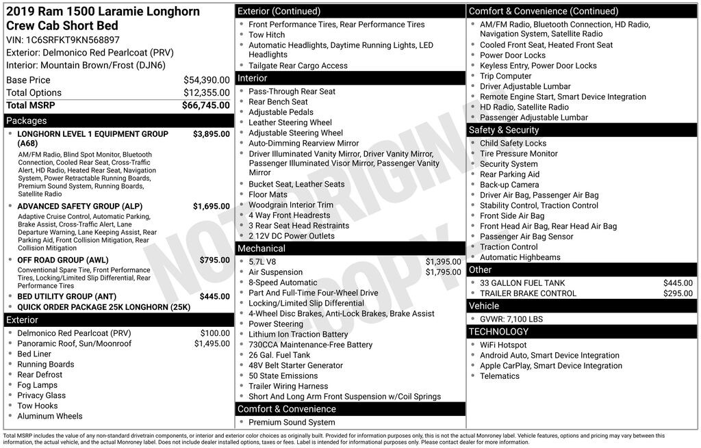 Gregg Young CDJR is honored to offer this outstanding 2019 Ram 1500 Laramie Longhorn in Delmonico Red Pearlcoat, TONNEAU COVER, 4 Adjustable Cargo Tie-Down Hooks, Adaptive Cruise Control w/Stop & Go, Advanced Brake Assist, Advanced Safety Group, Apple CarPlay/Android Auto, Bed Utility Group, Blind Spot & Cross Path Detection, Dome Dual LED Reading Lamp, Dual-Pane Panoramic Sunroof, E-Locker Rear Axle, Foam Bottle Insert (Door Trim Panel), Front Extra HD Shock Absorbers, Full Speed Forward Collision Warning Plus, GPS Navigation, harman/kardon 19 Speaker Premium Sound, Heated front seats, Heated rear seats, Hill Descent Control, Lane Keep Assist, LED Dome/Reading Lamp, Longhorn Level 1 Equipment Group, Navigation System, Off Road Decals, Off Road Group, Parallel & Perp Park Assist w/Stop, ParkView Rear Back-Up Camera, Pick-Up Box Lighting, Power Running Boards, Quick Order Package 25K Longhorn, Radio: Uconnect 12 w/Navigation, Rear Extra HD Shock Absorbers, Tilt steering wheel, USB Host Flip, Ventilated Rear Seats, Wireless Charging Pad. HEMI 5.7L V8 Multi Displacement VVT