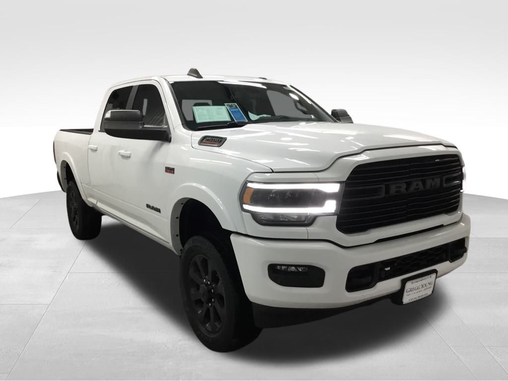 Gregg Young CDJR is pleased to offer this handsome 2020 Ram 2500 Laramie in Bright White Clearcoat, TRADE IN, CLEAN CARFAX, 17 Speaker harman kardon Premium Sound, 220 Amp Alternator, 2nd Row In Floor Storage Bins, Auto High Beam Headlamp Control, Black Exterior Mirrors, Black Exterior Truck Badging, Black Headlamp Bezels, Black Interior Accents, Black Ram Head Tailgate Badge, Black Tail Lamp Bezels, Blind Spot & Cross Path Detection, Body Color Door Handles, Body Color Grille Surround, Exterior Mirrors w/Memory, Foam Bottle Insert (Door Trim Panel), Gloss Black Grille Billets/Accents, GPS Navigation, Heated front seats, Heated Second Row Seats, Heated steering wheel, Heavy Duty Snow Plow Prep Group, Laramie Level 2 Equipment Group, Media Hub w/2 Charge Only USBs, Mirror-Mounted Aux Reverse Lamps, Night Edition, Painted Front Bumper, Painted Rear Bumper, ParkView Rear Back-Up Camera, Power Adjustable Convex Aux Mirrors, Power Adjustable Pedals w/Memory, Power Black Tow Mirrors w/Convex Spotter & Memory, Protection Group, Quick Order Package 2ZH Laramie, Radio: Uconnect 4C Nav w/8.4" Display, Radio/Driver Seat/Mirrors/Pedals Memory, Rain Sensitive Windshield Wipers, Remote Tailgate Release, Tow Hooks, Trip computer, Ventilated Front Seats. 6.4L Heavy Duty V8 HEMI w/MDS